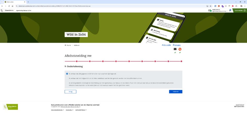 Stap 16: verklaar je akkoord en klik op “indienen”