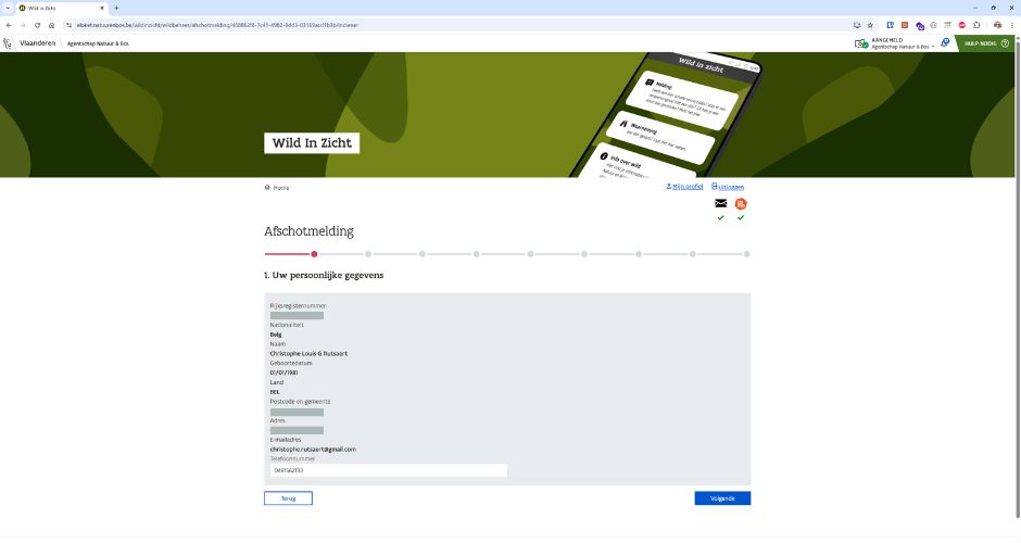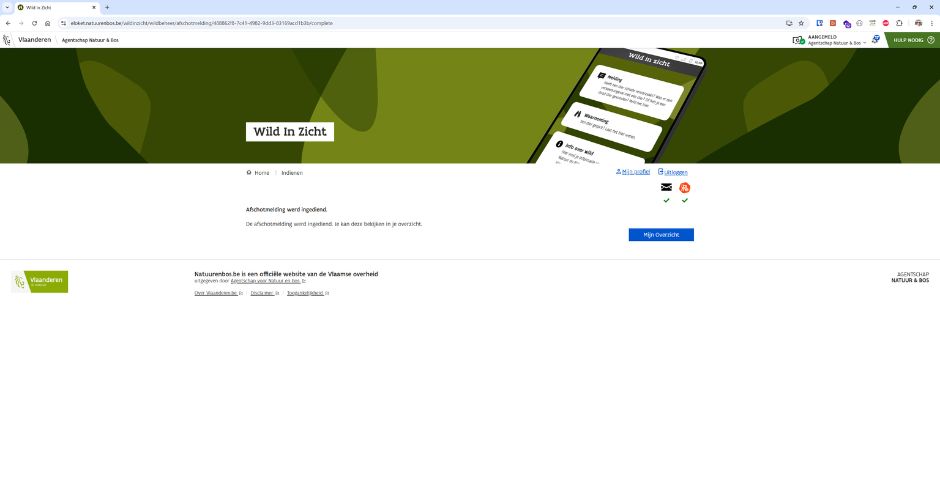 Klik op “Mijn overzicht” om jouw voorgaande afschotmeldingen te bekijken.