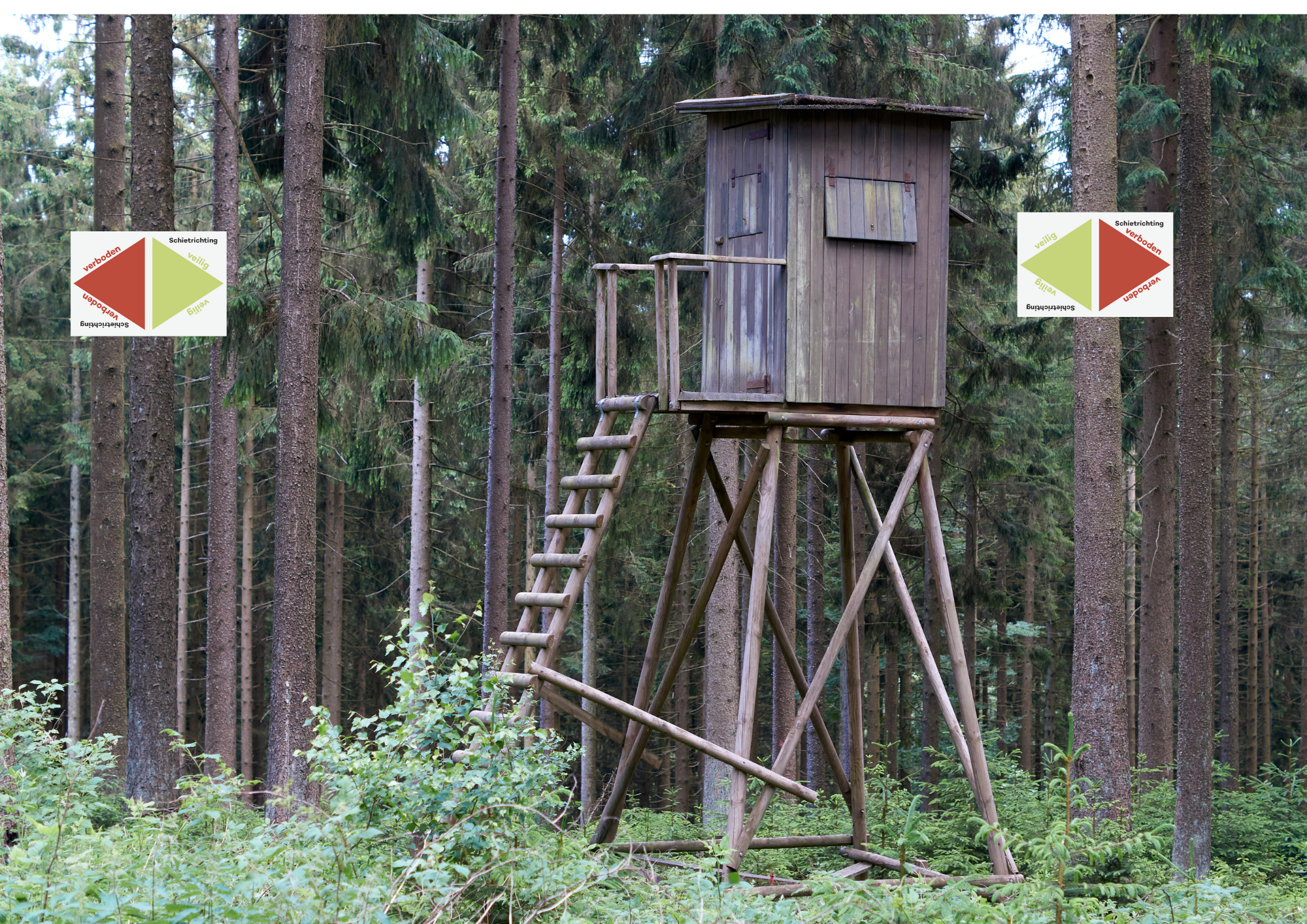 Handig bord dat de veilige schietrichting aangeeft. Kan 180 graden gedraaid worden.